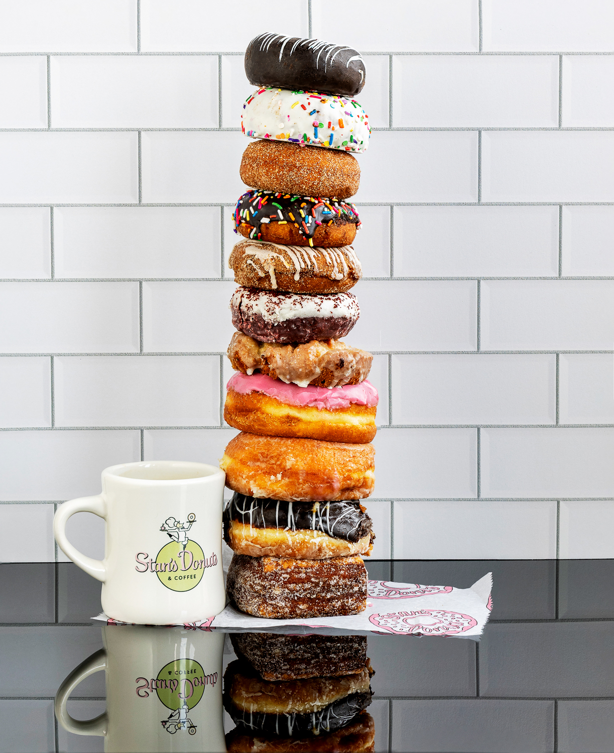 Our shoot was a blast – experimenting with lighting, angles, and stacked focusing to show off every glaze and sprinkle in its full glory. The hardest part? What to do with dozens of beautiful donuts afterward. They were, technically speaking, props purchased for business purposes (just in case the IRS is reading). So yes, we disposed of them – by carefully loading them into our car and conducting a very thorough taste test.